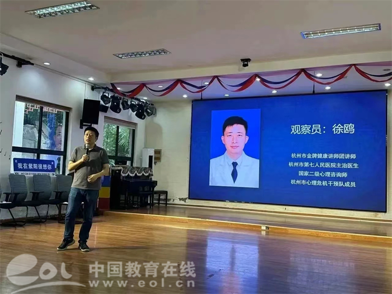 此外,杭州市第七人民医院精神科主治医师徐鸥还进行了主题为“家庭教育‘双进’系列——青少年沉迷网络心理健康教育”讲座,探讨了青少年心理健康问题,青少年的压力源和心理健康自我调节等内容。