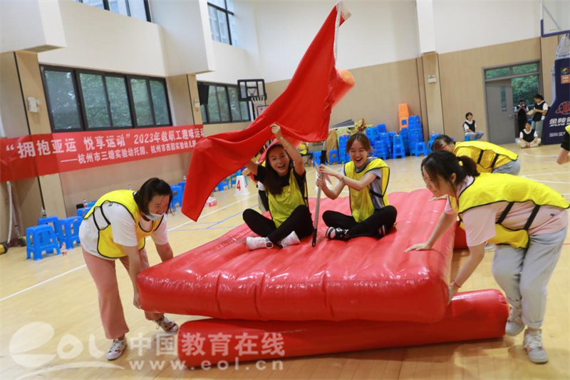 奋发图强向未来,亚运相伴迎金秋。近日,杭州市教育工会为三塘幼和西园幼这两家“和美驿家”特色单位送来了教工趣味运动嘉年华活动。