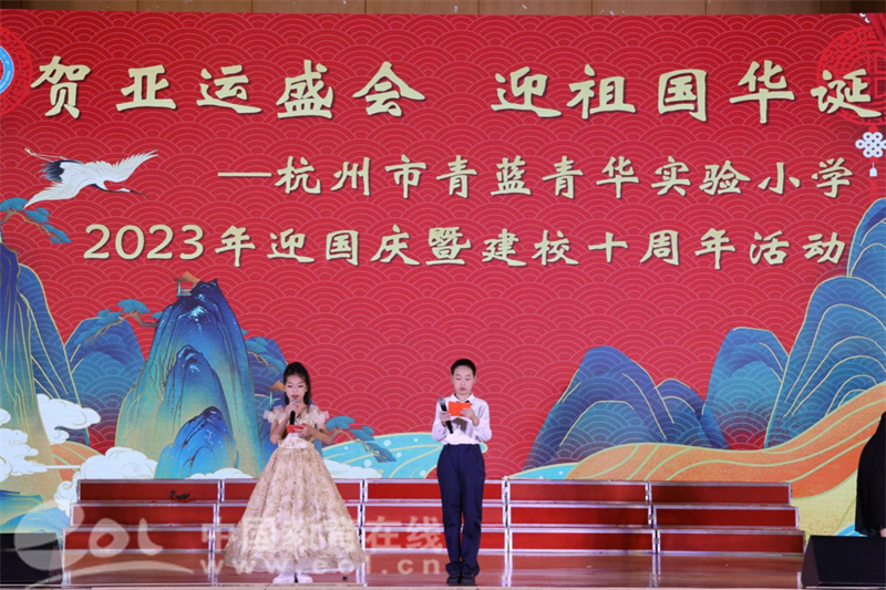 中国教育在线浙江站讯 (通讯员 叶丽)一首诗,传承千年文化;一篇文,照亮成长之路。为弘扬中华文化,增强民族自信心和自豪感,鼓励学生诵响传统文化特色,共同庆祝祖国华诞,礼赞杭州亚运,9月26日上午杭州市青蓝青华实验小学的师生们齐聚在体育馆开展了“贺亚运盛会 迎祖国华诞”为主题的迎国庆暨建校十周年活动。