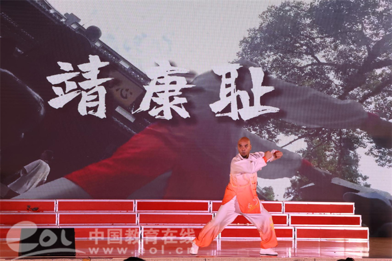 中国体育非物质文化遗产的传承人张老师在舞台上精神饱满,意气风发,身姿矫健,用精彩的武术表演赢得全场观众的喝彩。