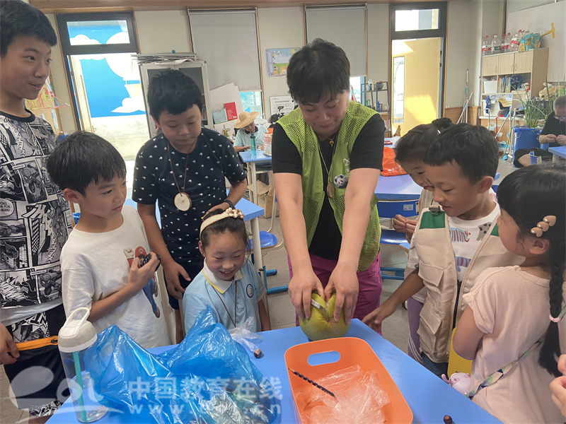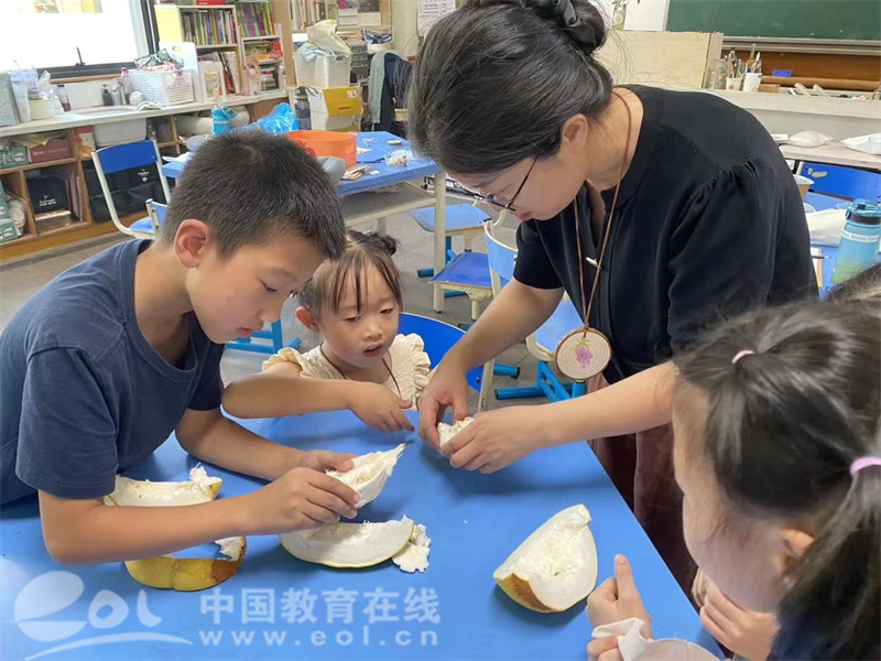 从近两日的课程安排上看,参与托管的孩子8:30-17:30在校,上午的时间主要用来阅读和完成假期作业,中午在学校用餐,下午的课程安排相对更为丰富,有科学活动、绿马甲自然活动“秋果限量版”、艺术活动、“秋天桂花香”、运动放松等。