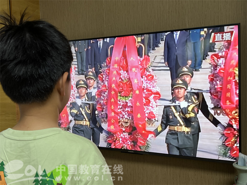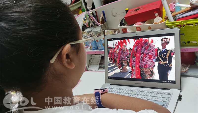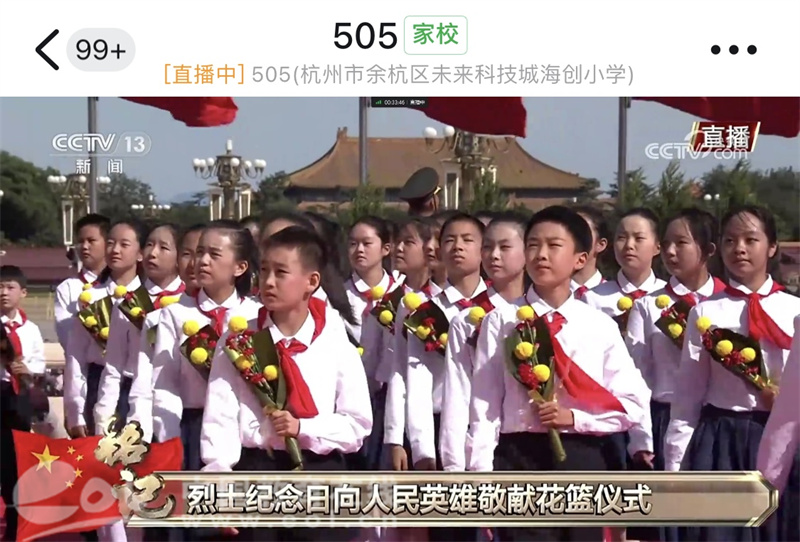 敬献花篮仪式现场庄严肃穆,观看直播的老师和学生深受感染,直播结束后,海创小学的师生纷纷发表感言,畅谈心得体会。