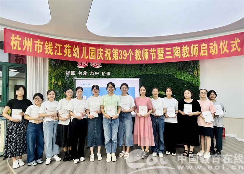 杭州市钱江苑幼儿园的每位青年老师都收到了一本和陶行知教育思想相关的专业书籍。幼儿园希望他们能以学习筑牢思想根基,以阅读开启新的成长。据了解,钱江苑幼儿园以“三陶教师”成长模式为抓手,着力打造青年学习品牌。园所分层带动青年教师专业发展,青年老师们需分别加入新陶、彩陶、金陶教师成长营,进行团队学习。