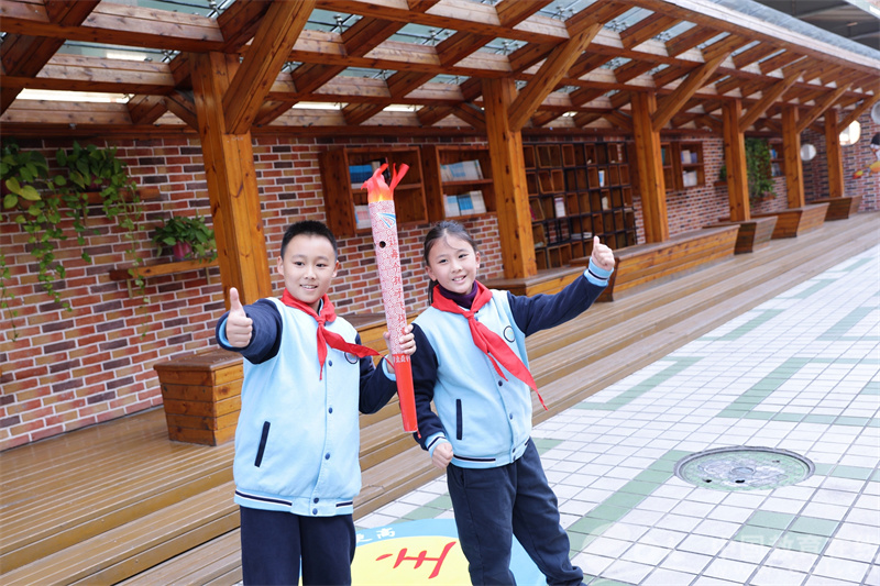 据杨校长介绍,13位火炬手分别由优秀学生代表、优秀家长代表、在职优秀教师代表和退休教师代表组成。13个接力点就是13个核心词,包含校风、学风及航天航空精神。“13这个数字有着特殊意义,‘1’代表1个核心,在党的领导下,学校坚持立德树人这一根本任务;‘3’则有两层含义,一是办学历程,二是‘三航育人’的德育品牌。”