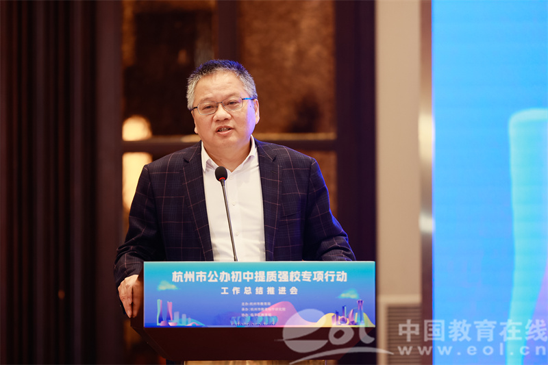 中国教育在线浙江站讯 (记者 陈显婷 通讯员 杭教)为进一步总结推广杭州市首批公办初中提质强校试点学校先进经验,全域推进初中提质强校行动,12月13日至14日,由杭州市教育局主办、杭州市教育科学研究院承办、临平区教育局协办的杭州市公办初中提质强校专项行动工作总结推进会顺利召开。杭州市教育局党委委员、副局长蒋锋,杭州市教育局基教处、市教育科学研究院相关负责人,各区、县(市)教育局负责人及全市初中学校代表200余人参会。