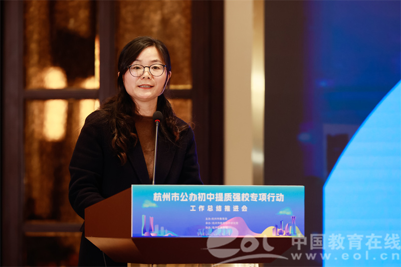 杭州市教育科学研究院副书记何丹作《提质强校:驶上教育高质量发展快车道》市域主题报告,生动描绘了杭州市公办初中提质强校工作的愿景和未来发展方向。