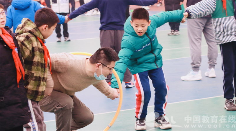 中国教育在线浙江站讯 (记者 占尘雪 通讯员 李秀群)哨声响起,孩子和家长们灵活地将呼啦圈依次传递,“加油爸爸,别让呼啦圈卡在你这”“不用着急小宝,快到你了就准备好,一钻就过去了”......欢笑、加油与鼓励的声音在杭州市长青小学回响,在这个阴天里恰如冬日暖阳般温暖人心。