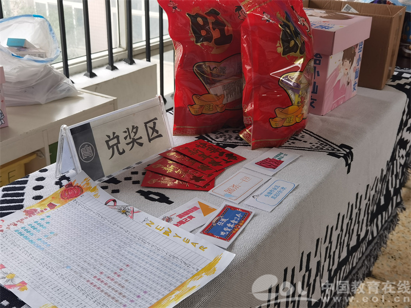 “希望这样的活动形式能让孩子们在感受新年气息的同时收到物质奖励与精神激励。”活动发起者、三个班的数学老师高珺介绍,孩子们可以通过在作业、课堂等方面的优秀表现获得积分,以此获得兑奖机会,平时兑奖采用刮刮卡的形式,临近新年便用上了更喜庆的红包盲抽。