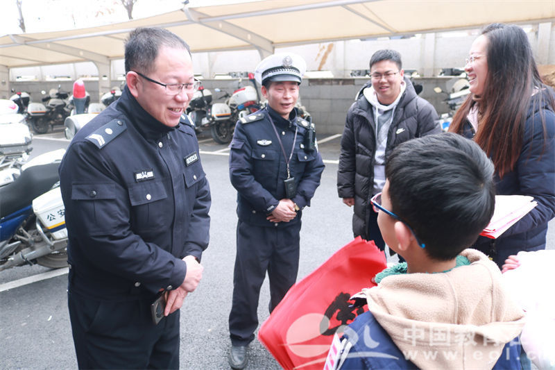 随后,两校区志愿服务队分别来到文新交警中队和三墩派出所,向辛勤工作的警察表达温暖的感谢,送上了美好的新春祝福。中队长还针对校园安保和春节出行安全等方面与老师们进行交流,提醒道:“春节出行要安全、文明出行,共度欢乐祥和的新春佳节。”