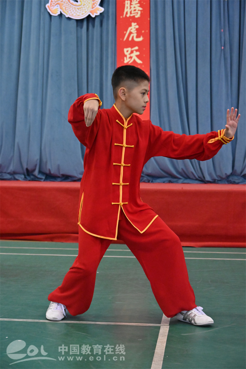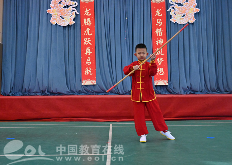龙是中华儿女的图腾,它承载着千年的文化与信仰。郑浩鹏等四位老师合唱“龙的传人”,激励孩子们能有龙腾虎跃、鱼跃龙门的干劲、闯劲,向着更加美好的未来奋勇前进。405班孙嘉志和401班白霖堃两位武术小健儿带来一套刚柔并济的《黄种人》,充分体现了中华民族武术文化的源远流长,博大精深。