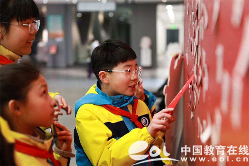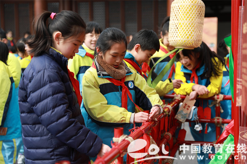 祈福:观山棚,打卡祈福。随后,同学们以小组为单位于广场西连廊领取福牌,写下新岁祝愿,在观山棚彩楼的同时,打卡祈福,共盼新学期。
