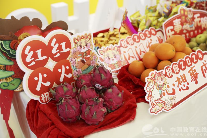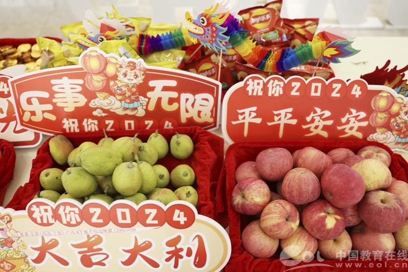 “祝学期心想事‘橙’!”抽到“心想事成”红包的小同学洋溢着笑容,领取了新年礼物——橙子。“新学期学业棒棒!”拿着棒棒糖的孩子满意地点点头。苹果象征平平安安,可乐代表百事可乐,梨子寓意大吉大利,桂圆意味圆圆满满,金币巧克力、旺仔牛奶、薯片、火龙果、棒棒糖也都饱含着美好的寓意,给孩子们带去新学期的祝福。同学们带着祝福,怀着憧憬踏入新学期。