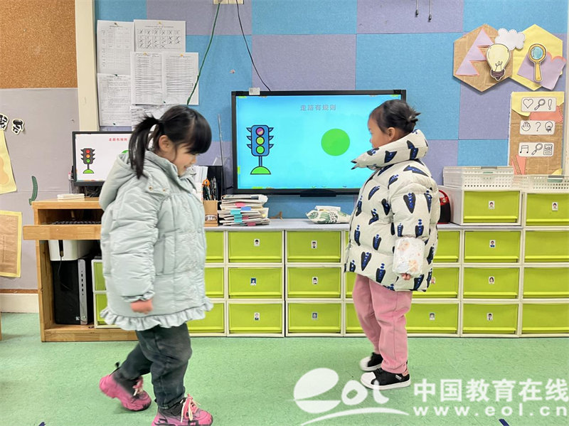 小班的孩子们在老师的带领下,学习了简单的交通安全知识,理解了“红灯停、绿灯行”等基本交通规则,以及骑电瓶车要佩戴安全帽、上下学要手拉手的安全常识。