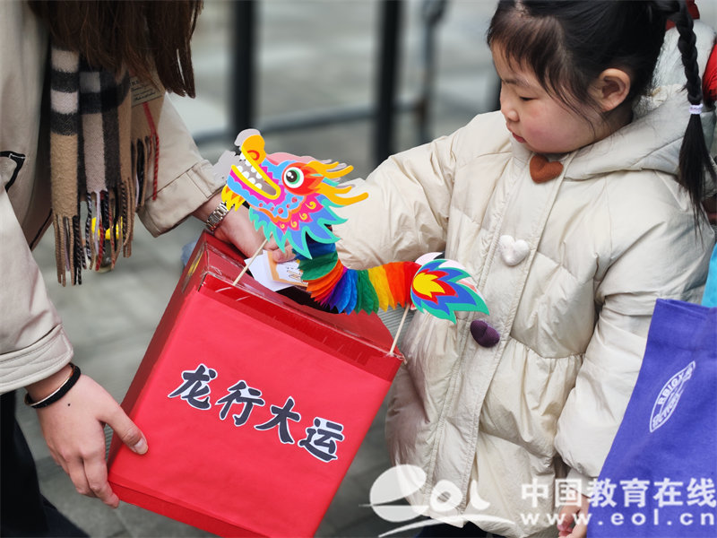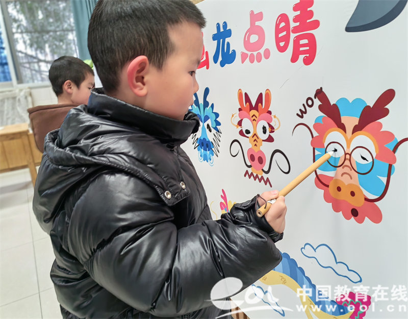 一大早,穿着新年红的老师们就在园门口等待着可爱的小朋友们。园内设置了三个趣味盎然的游戏环节:“画龙点睛”、“龙行大运”和“万事兴隆”。孩子们在这些游戏中尝试用画笔给小龙点睛,抽取寓意幸运的“幸运卡”,并兑换精美的奖励。此外,他们还惊喜地遇到了“谜语龙”,在爸爸妈妈的协助下猜谜语,赢取可爱的小龙玩具。