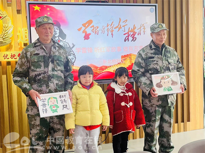 大班的孩子们走进新北乔社区,听老兵爷爷讲述雷锋乐于奉献、团结友爱以及忍着伤痛参加抢险救灾等事迹,孩子们聆听的格外认真,在故事中感受雷锋无私奉献的精神力量。孩子们纷纷表示,要好好学习雷锋的螺丝钉精神,努力学习,未来好好服务社会,报效祖国。最后孩子们给老兵爷爷们送上了他们亲手制作的礼物,并合影留念。