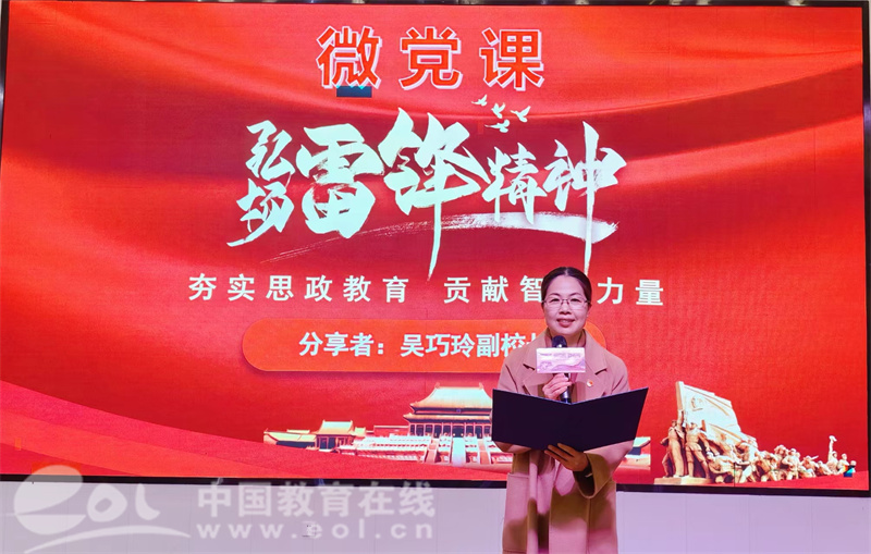 在2024年“学雷锋纪念日”来临之际,学校党、团、队组织开展了“弘扬雷锋精神 夯实思政教育 贡献智慧力量”主题教育。吴巧玲副校长通过微党课向全校师生诠释了雷锋精神,引领全校师生积极弘扬“热爱党、热爱国家、热爱社会主义的崇高理想和坚定信念;服务师生、助人为乐的奉献精神;干一行爱一行、专一行精一行的敬业精神;锐意进取、自强不息的创新精神;艰苦奋斗、勤俭节约的创业精神”。