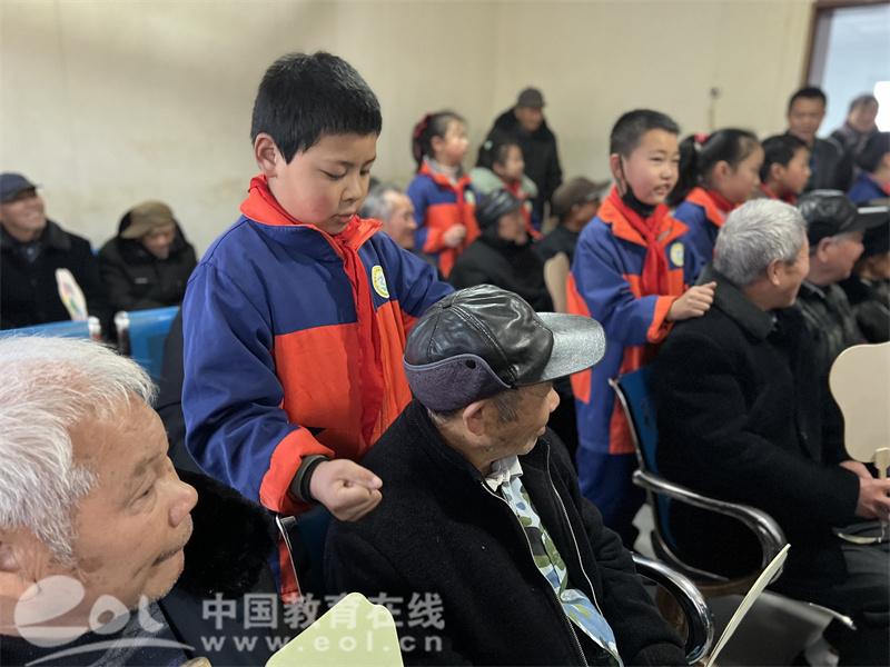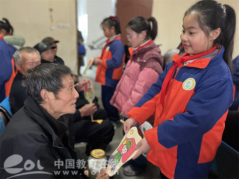 送完扇子,孩子们还不忘给老人们捶捶背、唱唱歌,送上最真诚的祝福。大家的举动让孤独的老人们开怀大笑,也得到了表扬和认可。