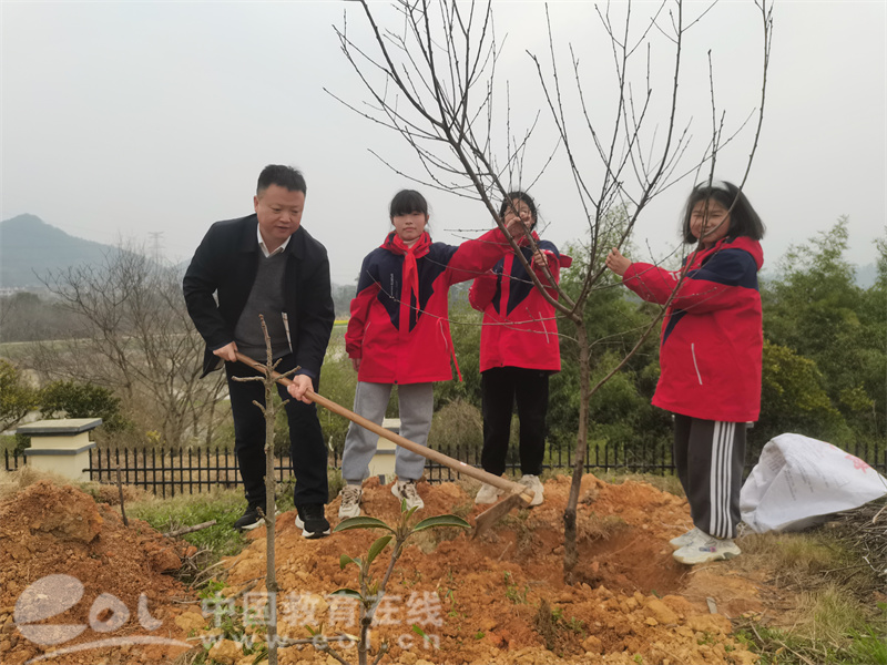 中国教育在线浙江站讯 (编辑 鲁少辛 通讯员 郑丽芳)“植”此青绿,共“树”未来。在3月12日植树节到来之际,衢州市常山县五里中心小学党员教师在党支部书记、校长樊杰军的带领下,和少先队员一起参加“我为校园添把绿,同为教育添光彩”主题植树活动。