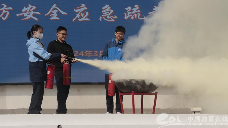 在操场上,同学们集体观看正确使用灭火器的科普视频,认真学习灭火器的使用方法并牢记于心。随后,各年级同学代表和年级组长进行灭火器操作示范练习,正确使用灭火器,在火灾发生时及时自救和救助他人。