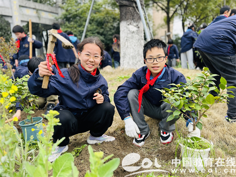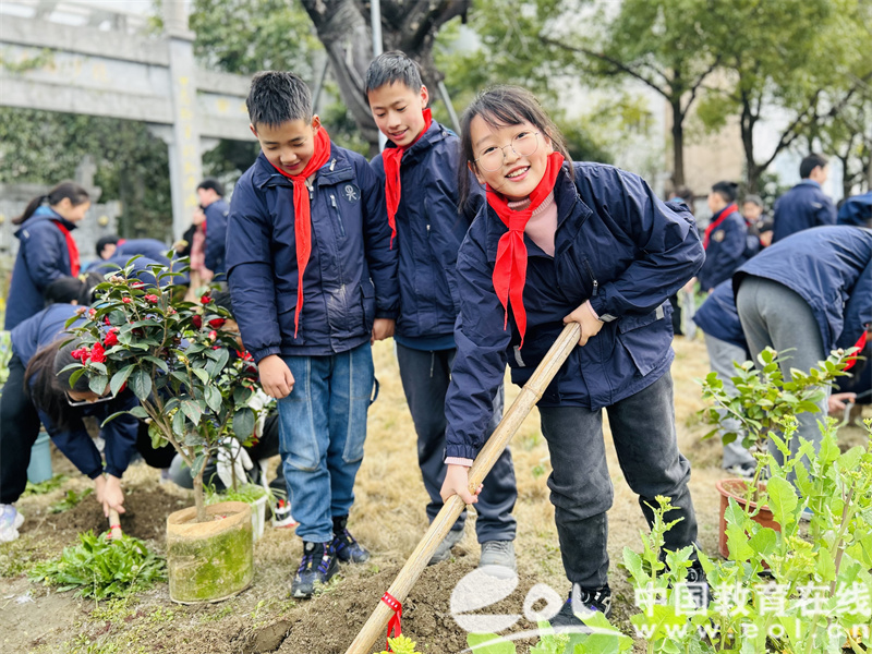 中国教育在线浙江站讯 (编辑 鲁少辛 通讯员 张姚帅)春风拂面,花开满园,新的毕业季即将降临,恰逢第46个植树节,在这个充满温馨和感慨的时刻,杭州市下沙第二小学(北沙书院)举办了一场独特而有意义的毕业季植树节活动,邀请所有六年级师生共同携手,用心种下对书院的深深眷恋。