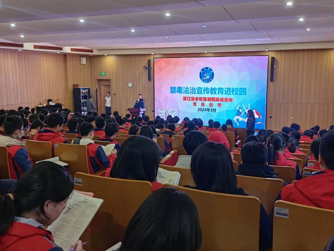 远离毒品,护航成长。天元公学法治副校长毕磊警长面向高中生开展“筑牢校园禁毒防线”专题讲座。通过观看禁毒影视作品、图片展示讲解、有奖问答等方式,他揭露了新型毒品和伪装类毒品的诱导性和危害性,让同学们对毒品及其危害性有了更深刻的认识,增强识毒、防毒、拒毒能力。