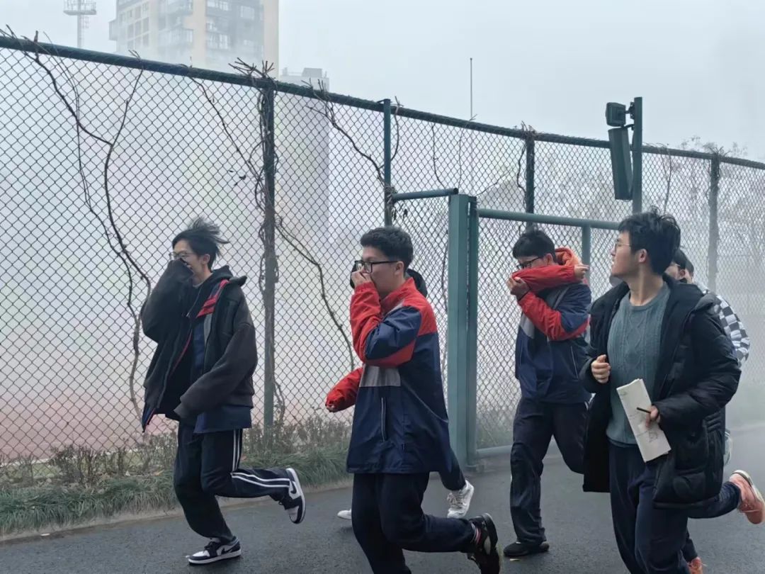 以练筑防,防患未然。消防疏散演练同步有序进行。当浓烟弥漫楼道,急促的警报声响起,同学们迅速用手捂住口鼻,有序地撤离宿舍楼,按预定疏散路线撤离到指定地点集合。各班迅速清点人数,及时汇报情况。本次演练不仅提升了学生的安全意识,还提高了住校生逃生应变能力,进一步筑牢校园的安全防线。