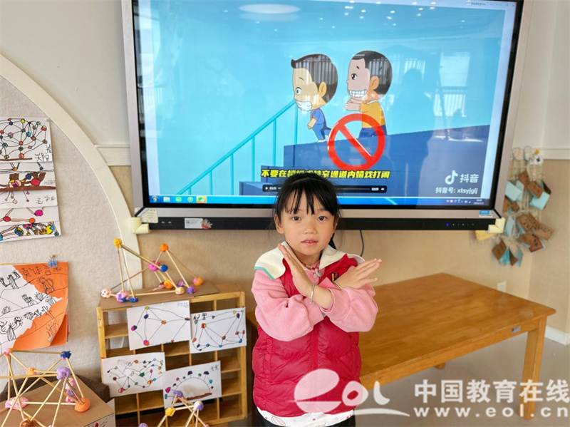演练前,教师根据本班实际情况,结合幼儿的年龄特点,通过图片、视频、课件演示等多种形式,针对楼梯、走廊、教室门口等容易发生踩踏事故的地方,组织开展了防踩踏安全教育活动,使幼儿了解发生踩踏事故的原因,学会意外事件发生时自我保护的方法,提高幼儿自救意识。