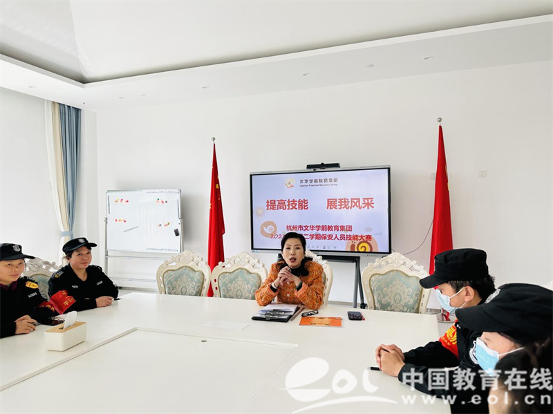 今年的3月25日是第29个“全国中小幼安全教育日”,浙大城市学院附属幼儿园后勤总务陈丽君老师还组织集团保安开展了保安培训及技能比武活动。陈老师在培训中强调了安保工作的重要性和保安的岗位制度。在日常安保操作流程方面,培训详细介绍了巡逻检查、门禁管理以及监控值守等关键环节的操作规范。安保人员需要严格按照流程执行各项任务,确保幼儿园的安全无小事。此外,培训还特别强调了突发事件处理与应急预案演练的重要性,安保人员需要熟悉各种突发事件的应对措施,并能够在关键时刻迅速反应,有效处置。