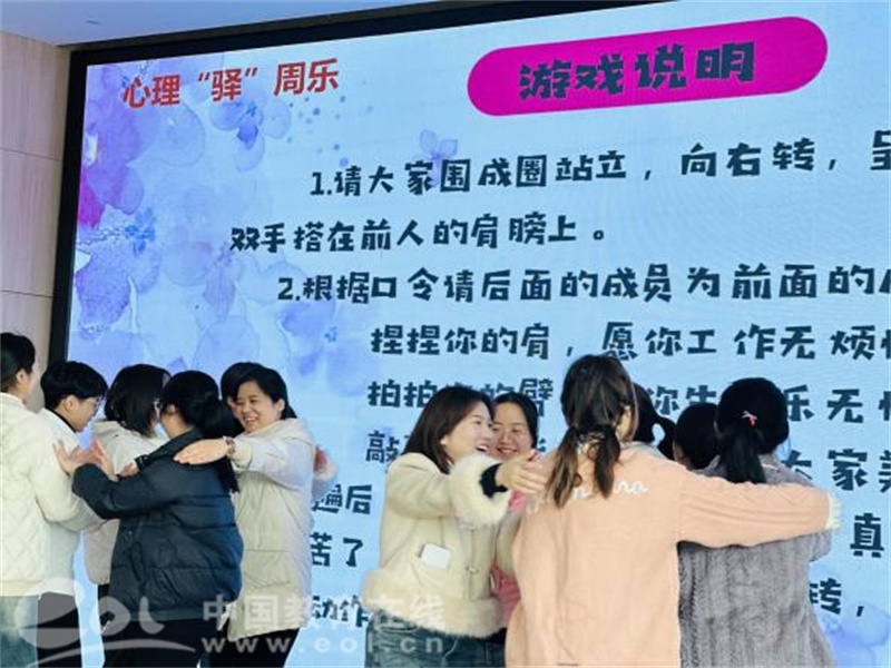 工会每周开展一个轻松的心理小游戏,为工作了一周的老师们抹去身体的疲劳和精神压力,也为下一周带去充沛的精神和满满的活力,更好地促进老师们积极主动做一名幸福教师。