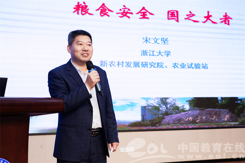 当天,景成实验学校还邀请了浙江大学新农村发展研究院、农业试验站的宋文坚教授走进校园,他不仅为学校的“半亩地”注入了高科技,也带来了精彩的科普内容《粮食安全 国之大者》,让同学们对粮食有了更深的认识。“农,天下之本,勿莫大焉!”粮食安全是我们的“国之大者”,知晓更多农业知识,才能帮助同学们更好地进行劳动实践。