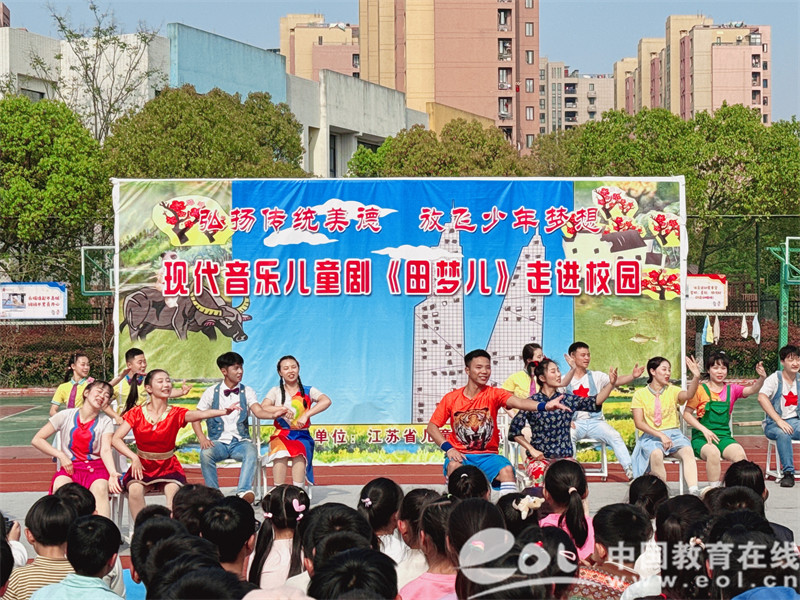 中国教育在线浙江站讯(通讯员 周莹)为进一步提升学生的艺术素养,推动戏曲与艺术在校园中的传承与发展,使学生们近距离感受戏曲艺术的魅力,弘扬中华传统美德,放飞少年梦想,4月9日,常州市金坛区锡剧团携现代音乐儿童剧《田梦儿》走进杭州市北秀小学。全体师生齐聚操场观看剧目,享受了一场饱含真情与美德的视听盛宴,在以“田梦儿”为主角的儿童剧中感受不一样的感动和启示。