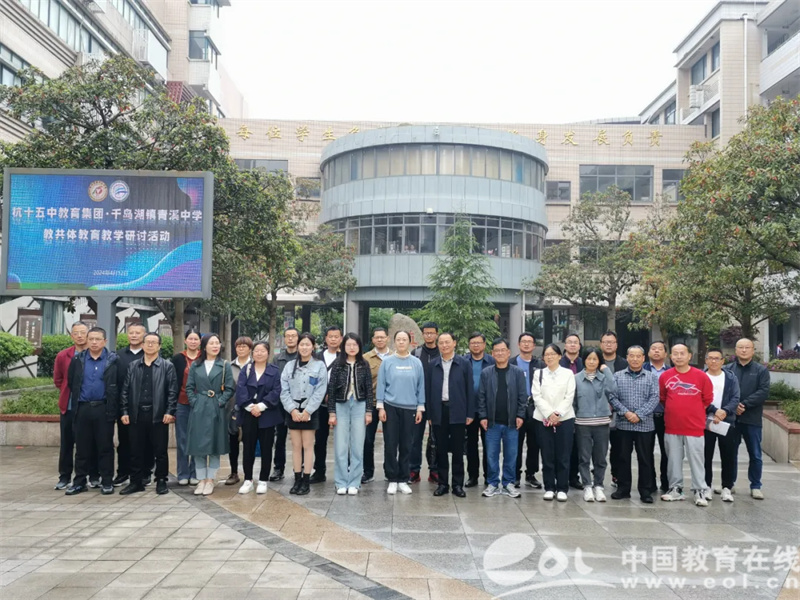 中国教育在线浙江站讯(编辑 邱彬鑫 通讯员 张明海)四月芳菲春正好,交流合作促发展。为推动义务教育优质均衡发展,进一步加深杭十五中教育集团与“教共体”学校千岛湖镇青溪初级中学的交流学习,提升教育教学和管理水平,2024年4月12日,千岛湖镇青溪初级中学校长带领中层管理及骨干教师来到杭十五中教育集团交流与研讨。