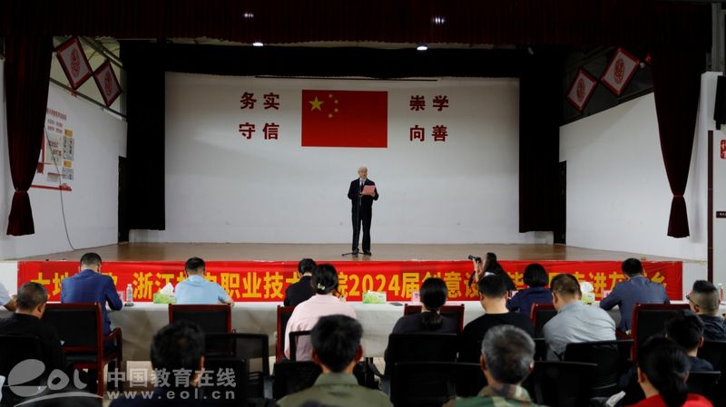 浙江机电职业技术学院校长贺星岳致辞。贺星岳表示,衢州市衢江区灰坪乡是此次毕业设计巡展的重要一站。近年来,学校师生多次来访灰坪乡,对灰坪乡的经济、文化、生态、产业等方面开展深入调研,深化新型帮共体建设,聚焦结对县域发展所需,助力乡村振兴,发挥“双高”院校引领示范作用,打造“共同富裕先行示范区”助力“两个先行”。