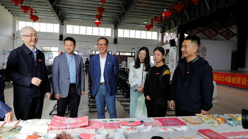 中国教育在线浙江站讯 (记者 白菁洁 通讯员 刘博盛)15日上午10点多,在衢州市灰坪乡灰坪村的文化礼堂里,浙江机电职业技术学院创意设计学院“大地飞歌-让创意设计唱响乡村”主题毕业设计展乡村巡展火热进行中。浙江机电职业技术学院校长贺星岳、衢州市衢江区灰坪乡党委书记童媛媛、浙江机电职业技术学院党委委员、创意设计学院院长邓劲莲、衢州市人才和就业管理中心副主任谭新中、衢州市衢江区灰坪乡党委副书记、乡长袁志斌、衢江区农业农村局党委委员、副局长吴锡倍、衢江区其他相关领导、各乡村代表、创意设计学院党总支书记符强、创意设计学院副院长季海祺及其他相关师生出席了本次活动。