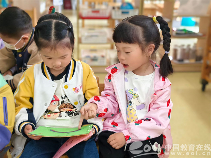 孩子们一人一书,或是三三两两,和老师、小伙伴围坐在草坪上一起分享最喜爱的绘本。孩子们在感受阅读的快乐时,也享受着生活的美好。