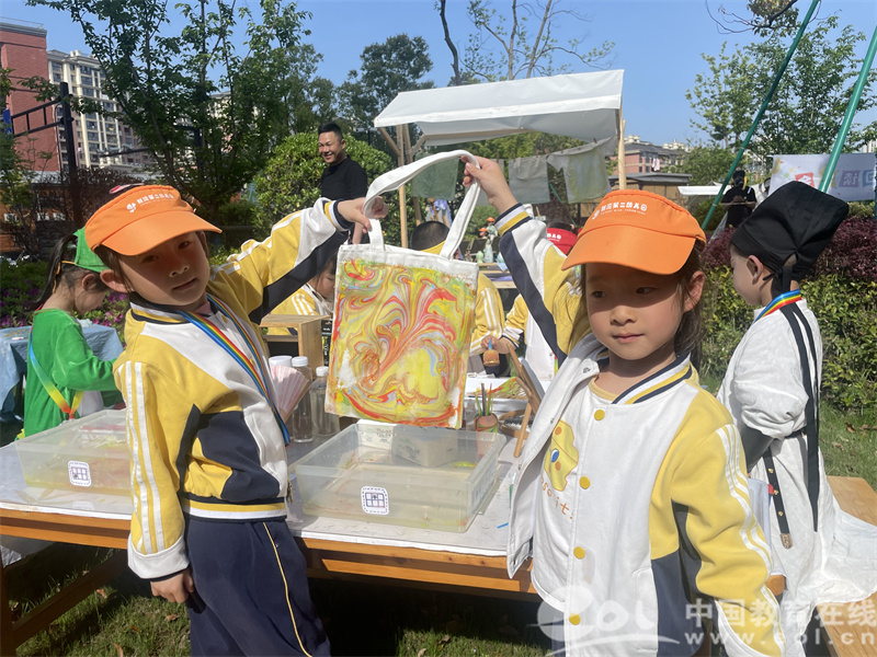 不仅有讲故事,还有制作水拓书签、扎染书袋等系列周边活动,小朋友们玩得不亦乐乎。