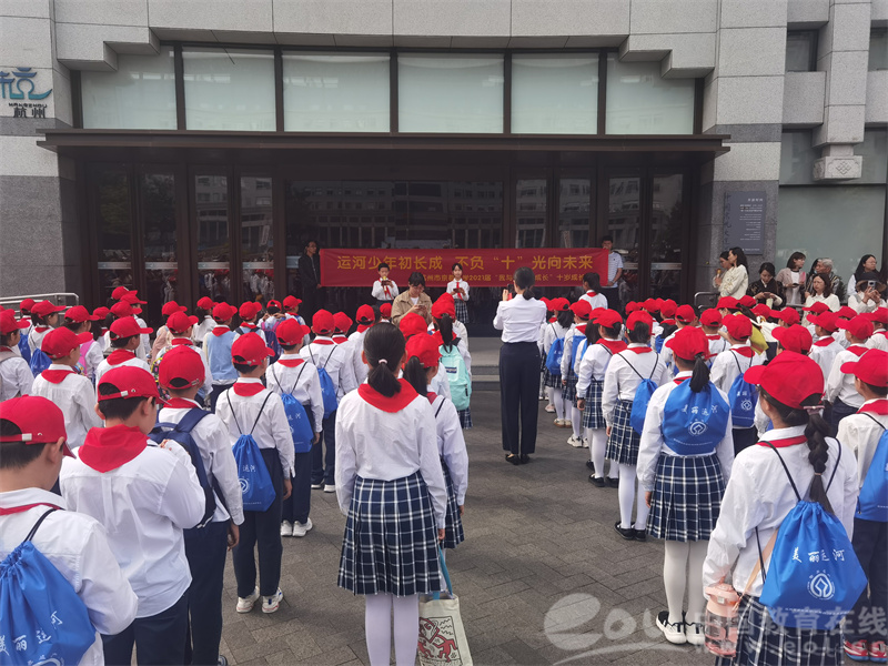 4月19日上午,京都小学三年级全体师生和家长齐聚京杭大运河博物馆,参加“我与运河共成长”十岁成长礼,共庆十岁生日,共贺运河申遗十周年。当天,京都小学还联合杭州市京杭运河(杭州段)综合保护中心等多家单位为同学们举行了“小小河长”颁章仪式,及《申遗十周年》讲座。