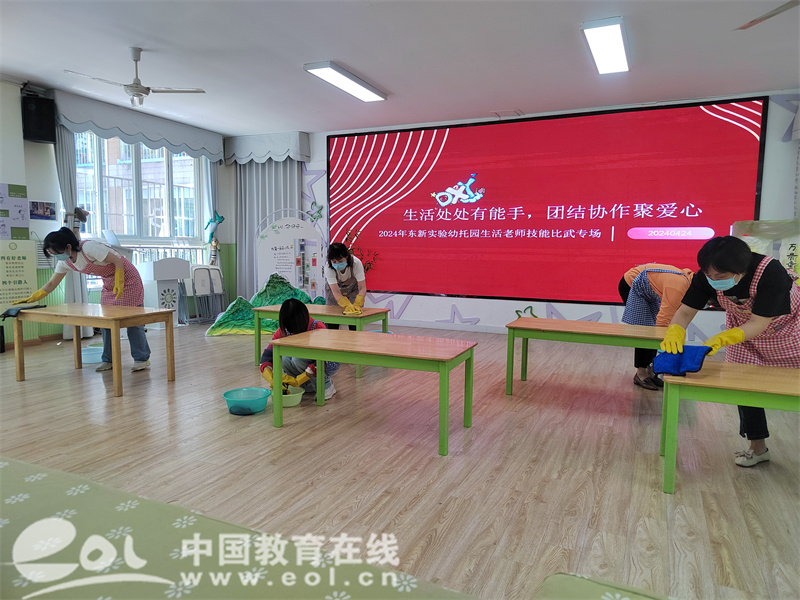 中国教育在线浙江站讯 (记者 陈显婷 通讯员 黄赛华)近日,为了更好地提高保育老师的理论与实际操作技能等综合能力,切实加强幼儿园保育工作,规范工作流程,提高工作质量,促进保育老师的队伍建设,使保育老师工作更加常规化、规范化和细致化,真正做到“保教结合,教养并重”,东新实验幼托园开展“生活处处有能手,团结协作聚爱心”保育老师基本功技能比武。