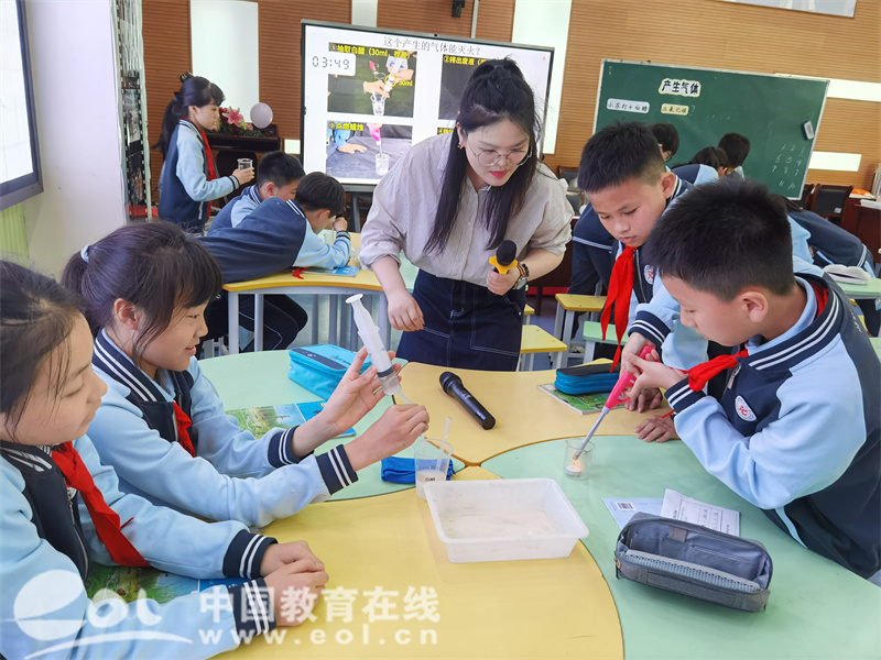 杭州市夏衍小学、杭州市夏衍第二小学的黄芸洁老师执教《产生气体的变化》一课。黄老师以制作注射器版灭火器为任务驱动,通过生活中的材料,给学生创造长时间的探究空间与时间。再结合生活中的汽水产生气体的现象引导学生思考,深化学生对化学变化和物理变化本质区别的认知,培养学生的科学思维和证据意识。