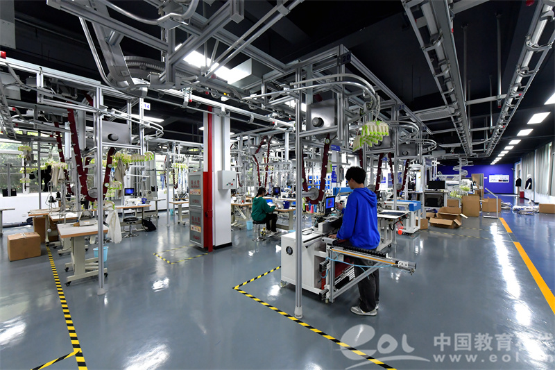 中国教育在线浙江站讯 (通讯员 王国海)自动裁床机将布料裁剪成电脑设定的形状;智能吊挂机将裁剪好的布料依次传送至每道工序的工人座位前;借助大数据和云计算技术,生产数据实时采集、分析和共享……近日,记者在浙江纺织服装职业技术学院(以下简称“浙纺服职院”)服装智慧数字化工厂看到,服装“制造”已成为“智造”。