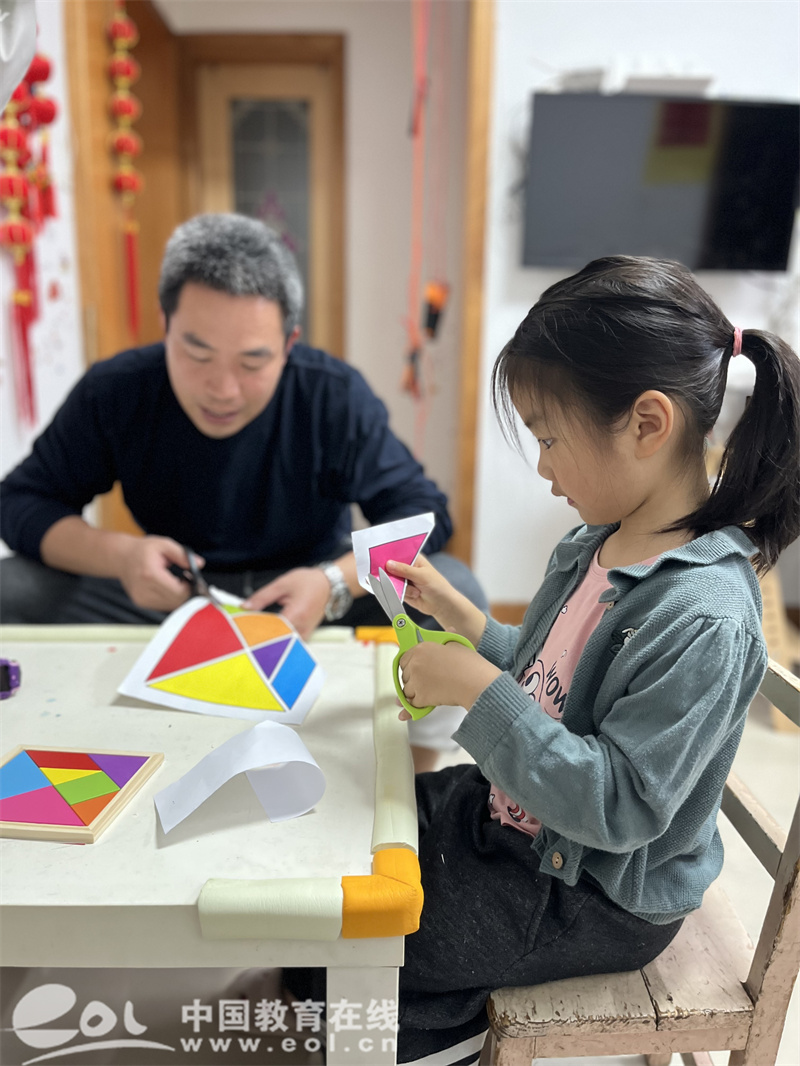 画一画、涂一涂、剪一剪、拼一拼,孩子们在家中和爸爸妈妈一起制作了亲子七巧板。在制作的过程中不仅认识了七巧板中的不同的图形与颜色,而且激发了孩子们对七巧板的兴趣和探索欲,培养了他们的观察和动手能力,也进一步拉近了亲子关系,促进家园共育。