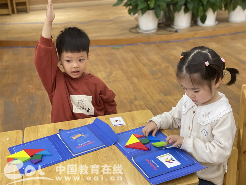 中国教育在线浙江站讯 (编辑 鲁少辛)“什么?七巧板可以变绘本?”,“七巧板还能变成各种各样的小动物?”,“七巧板可好玩了!是我们的好朋友!”近日,在杭州市胜利幼儿园里,小小的七巧板,就是可以这样“玩”出新花样,快来看一看孩子们的七巧板快乐之旅吧!