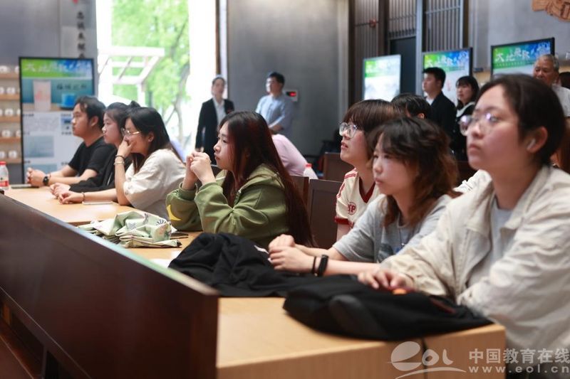 2023届毕业生金宏杨以自身发展经历讲述就业创业经历,并说道:“今天的参观走访让我看到建德市的乡村环境非常美丽,配套设施、政策力度非常完善,我想借此机会呼吁大家,让我们一起回到乡村,用我们的创意和设计,为乡村注入新的活力。”