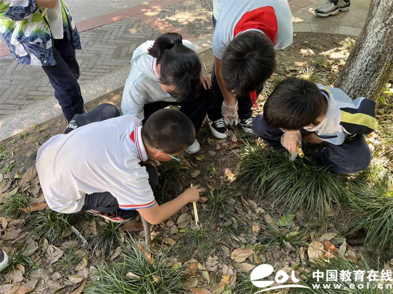 四(3)班的同学们化身“环保小卫士”,热情高涨,全力投入,你争我赶,唯恐落后,连坑洼处、缝隙里的碎纸、塑料瓶都不放过,三五成群地竞相比赛,个个都是劳动小能手。