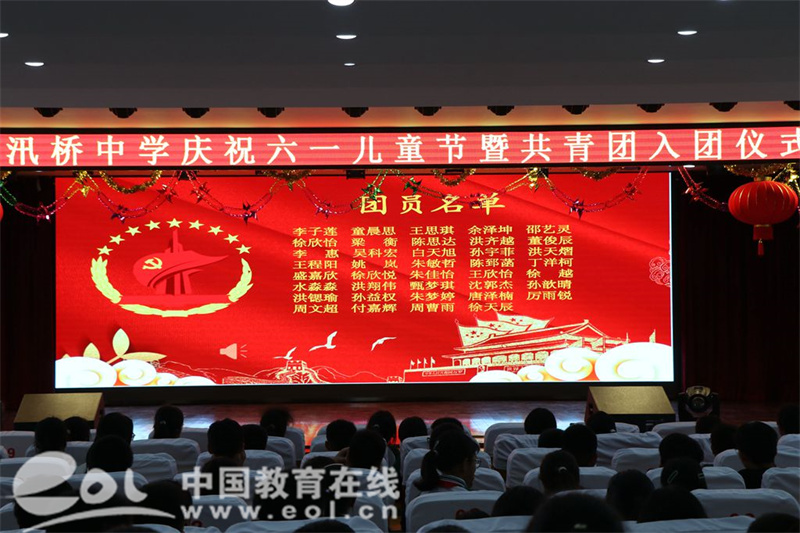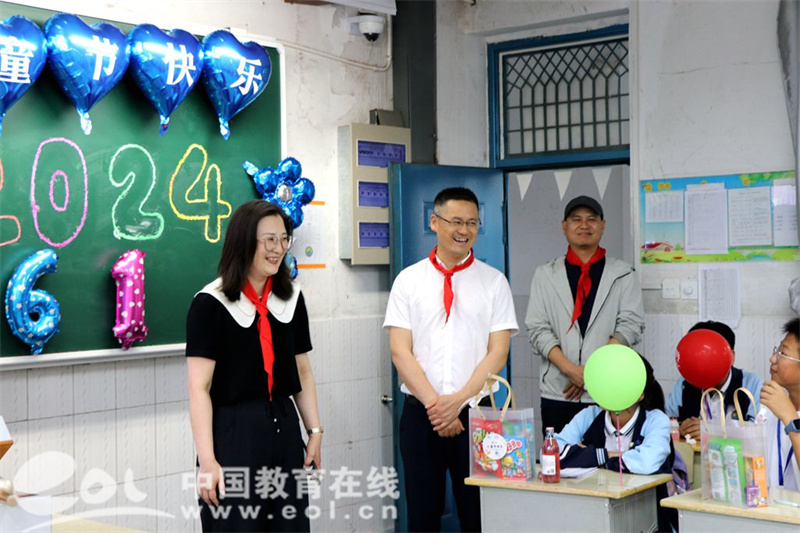 中国教育在线浙江站讯 (编辑 鲁少辛 通讯员 鲍文贤)“六一”是一支歌,这里跳动着美妙的音符。“六一”是一首诗,这里充满着美好的憧憬。“六一”是一幅画,这里描绘着美丽的年华。5月31日下午,浙江省绍兴市柯桥区杨汛桥中学开展了以“一路‘童’行心向党,向阳生长赴青春”为主题的庆“六一”国际儿童节系列活动,杨汛桥街道人大工委主任丁建军、街道总工会主席兼城建办主任马一冲风冒雨前来慰问,并送上节日的问候与礼物,杨汛桥街道教育党委书记、杨汛桥中学书记校长吴红红亲自陪同,七年级全体学生沉浸在欢乐的气氛中,尽情享受节日的快乐。