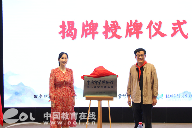 中国教育在线浙江站讯 (编辑 陈显婷 通讯员 通讯员 朱辰之)为了将中国传统文化的精髓引入校园,激发清河学子对艺术的兴趣,培养下一代的文化传承者,近日,杭州市清河实验学校与历史悠久的西泠印社、中国印学博物馆展开了一次意义深远的结对合作活动。现场,学校的校级领导与西泠印社的专家和中国印学博物馆的领导为学校“大成宋韵学馆”和中国印学博物馆第二课堂实践基地揭牌。