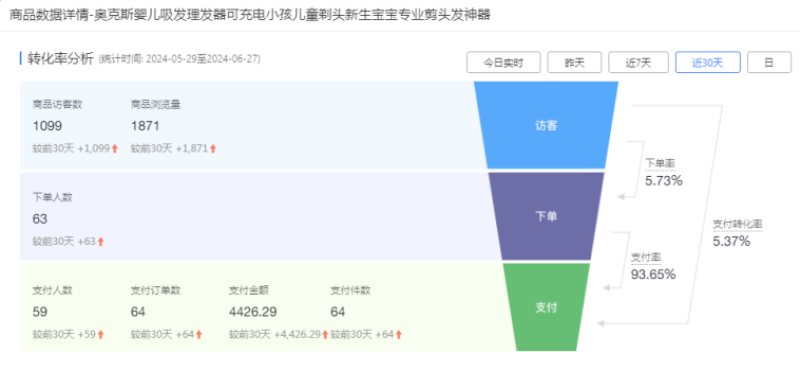 新店铺婴儿吸发理发器近一月订单成交量数据图