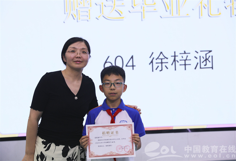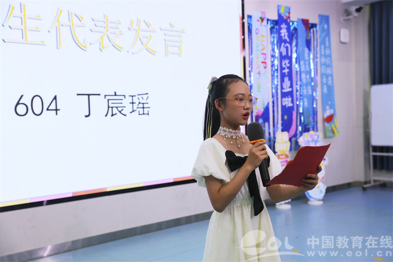 在即将离开母校之际,毕业生代表丁宸瑶同学发表了毕业感言,程浩然同学代表毕业班学生为学校送上了毕业礼物,徐梓涵同学为学校捐书40册,表达了同学们对母校诚挚的祝福。