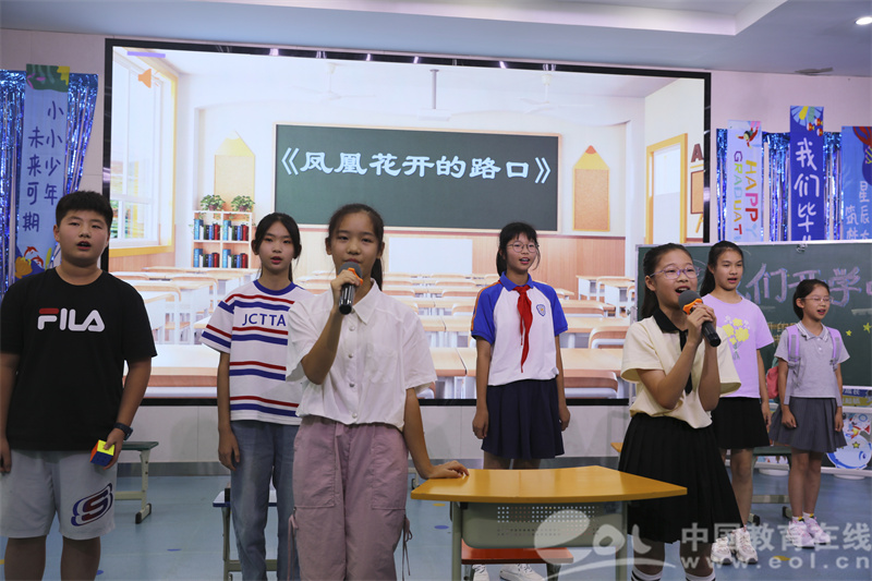 相逢是一首赞歌,今天的离别意味着来日的相聚,六年级毕业生代表为同学们献唱了一首《凤凰花开的路口》,愿同学们都能有面对困难的勇气,不畏前行。