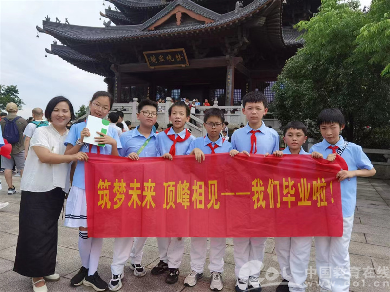 605班的宣云卓同学表示:“又是一年离别季……连绵不断的雨终于停了些许,在这充满阳光的季节里,我们登上了半山望宸阁,俯视都市之美。看着壮观的世界,我不禁想起那些在母校度过的美好而天真的日子,我要对母校说,再见了……我与同学们一次次互相帮助,一次次互相激励,而现在,那些金色的笑脸和银铃般爽朗的笑声将离我而去了……但即使如此我也不会悲伤或恐惧,我们要扬帆远航,未来可期,让我们顶峰相见。再见了,小学!你好,中学!”